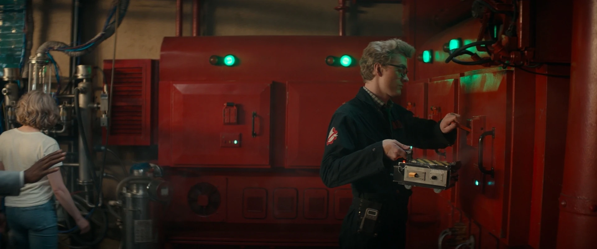 In the summer of 2024, the Containment Unit slightly rumbled after Gary Grooberson pushed the buttons to set the entry grid and neutronize the field. He struggled to pull the lever down. Callie Spengler helped and after some effort they eventually pulled the lever all the way down and finished depositing Sewer Dragon. The green light illuminated. A Death Chill unleashed from the Orb of Garraka while it was in Ray's Occult Books shook the basement. The wall the unit was mounted on had large visible cracks in the aftermath. Frost started to develop on the unit. Janine Melnitz checked out the basement with Gary. He asked if the original Ghostbusters even emptied it. Janine sarcastically asked where they could have done that and suggested the East River. She took a photo of the unit with her phone and promised to let Winston's engineers know about the problem. The next day, Lars Pinfield took readings of the Containment Unit with a Narda Electromagnetic Radiation Monitor and Isotropic Probe. Gary tried to make small talk and asked if his equipment helped him hear the ghosts in the unit. Lars replied silence helped him hear the ghosts. Gary and Phoebe exchanged looks. Lars was startled by a klanging sound from the unit. Winston, Janine, and Lars met with the new team and went over Egon's original designs for the Containment Unit then addressed the problem of it running out of space after 40 years of compiling spiritual waste. Janine admitted in the '80s nobody was concerned about the future. Winston emphasized his concern about the rift the momentary burst of spiritual energy created in 1984 when the unit was shut down. Callie asked if he meant Heaven. Winston admitted he didn't know and that's what scared him. Janine and Winston stated they bought the Firehouse back for a reason: for the Ghostbusters to be the "finger in the dam" dealing with spiritual acitivty and the Firehouse needed to be protected. Trevor Spengler asked why another Containment Unit couldn't be built. Lars was surprised they didn't know already. Winston admitted his engineers already did.