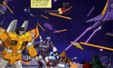 Soundwave suggested broadcasting a distress beacon. Starscream thought the Decepticons should have fled the planet, too. Megatron stated they did not flee and declared he would deal with Gozer himself. Megatron walked up the temple stairs. Vinz charged and leaped at him. Megatron knocked him aside. Megatron walked up to Gozer and asked why it came to his world. Gozer replied to came to end Cybertron and implored him to choose. Megatron didn't understand. Gozer explained it was time to choose the form of their destruction then quickly stated it was done. Starscream became worried. Shockwave asked him what he did. Starscream claimed he did nothing but had a fleeting thought about how he could be mighty enough to destroy the planet. Gozer's Destructor form manifested, a larger version of Starscream. Megatron shot Starscream in the right shoulder. He vowed he would pay for his indiscretion then ordered the alarm to be sounded. The other Decepticons rallied to them. The Decepticons battled Megascream and endured death on a scale they never experienced before. The four heads on Megascream's necklace fired energy blasts as Megascream ripped Devastator in half then fatally punched Predaking in the chest. Soundwave confirmed he suffered critical damage and Devastator was deactivated. Shockwave stated their greatest weapons had failed. Starscream declared Cybertron was lost. Megatron smacked him and refused to accept that outcome. He still blamed Starscream for their predicament and explained he didn't fight to liberate Cybertron from Autobots just to see it fall to a god.