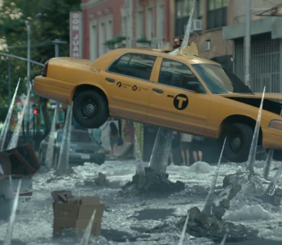 The Death Chill froze the Chinatown area. Cars skidded around. Ice spikes shot up across the street. A couple hailed a taxi cab but it was impaled and was carried up into mid-air. The ice spikes traveled down the street and shattered a coffee shop's storefront. A black storm-like manifestation approached Coney Island. Everyone soon noticed the large black cloud rapidly moving towards them. Ice spikes suddenly shot up through the water and traveled up through the beach. The people panicked and ran away. The lifeguard on duty jumped down from his post. Lightning struck an umbrella swept up in the air.
