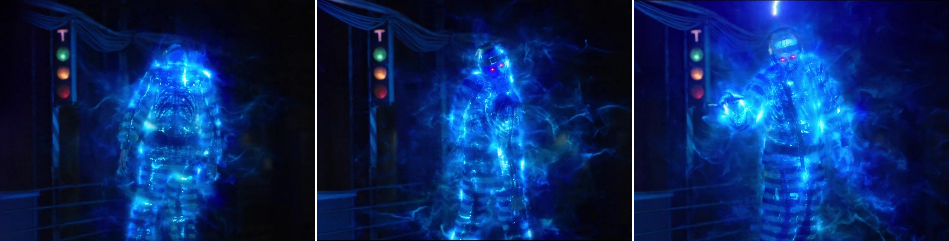 - ↑ fxguide "Who you gonna call? Call Illoura, MPC, SPI, & Zero VFX" 8/10/16 Line reads: ""The production wanted a lot of electricity surrounding him," explains Warner. We asked ourselves about how we could make it ethereal, and how we could make the photography and performance and character all look real together, with the smoke and electricity. We also thought a lot about who Fred was before he became a ghost, and built a lot of that visual identity into his character, and into the character of the effects...The ghost wasn't just a vaporous apparition; he had a story we needed to tell. He was a bad dude, and we had to extend that story."."