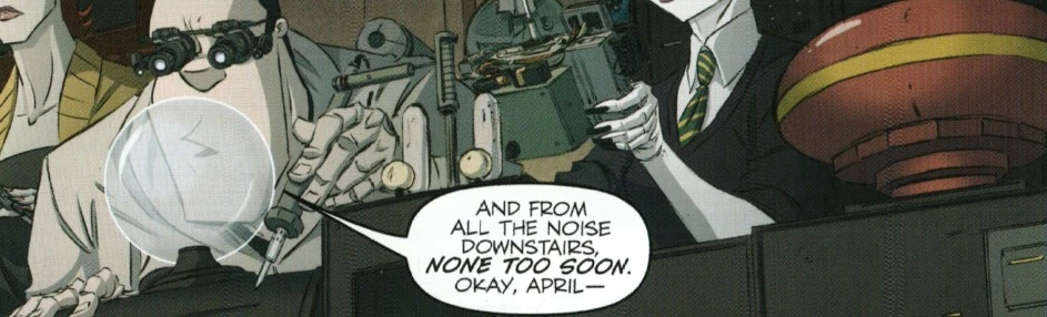 Ray went to the R&D Laboratory on the second floor to rig such a device with April O'Neil and Kylie Griffin. After several hours, they connected it on the first try. Ray did some fine tuning and with Kylie's guidance, calibrated it. April reconnected the power but Chi-You intervened and prevented them from triggering the Emitter. Casey Jones stepped in and set off the pulse. The thralls were restored to normal and Chi-You discovered his ability to enthrall was negated.