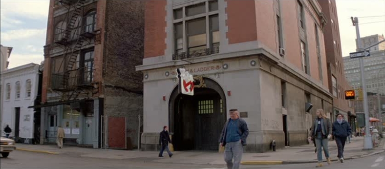 - ↑ Joe Medjuck (2005). Ghostbusters- Commentary (2005) (DVD ts. 16:00-16:10). Columbia TriStar Home Video. Joe Medjuck says: "More creative geography. This is an actual old Firehouse in Los Angeles but the exterior is an actual in-use Firehouse in New York. "