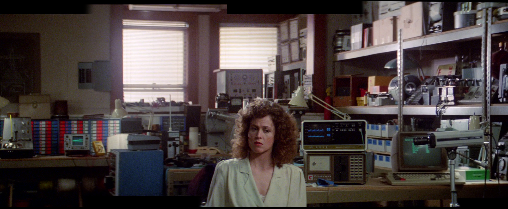 Egon Spengler looked through parts on a shelf in the basement. Louis Tully was with him. Egon told him there was one more test he wanted to perform. Peck, the police captain, and the Con Edison man came down the stairs. Janine ran down the steps after them and beat the Con Edison man. Janine told Egon she tried to stop them but Peck said he had a warrant. Egon held out his right arm. Louis mimicked him. Egon stated they were on private property. Peck ignored him and pointed at the Containment Unit and the panels then ordered everything to be shut off. Egon pointed at them and warned turning off the machines would be extremely hazardous. Louis mimicked Egon and pointed, too. Peck was not swayed and told him the Ghostbusters were facing federal prosecution for at least half a dozen environmental violations. He again ordered Egon to shut everything off and threatened they would shut them off for him if he did not. Egon, Janine, and Louis were now planted in front of the control panels. Egon tried to explain it was a high voltage laser containment system and simply turning it off would be like dropping a bomb on the city. Peck thought was being patronizing and stated he was not grotesquely stupid like the people they bilked. The Con Edison man stared at the Containment Unit.