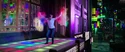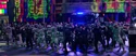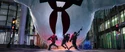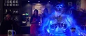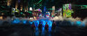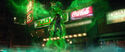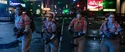 The rumbling continued. Rowan/Kevin descended on the hotel marquee outside the Mercado. Agent Rorke wondered who the flying beefcake was. Rowan greeted them and wanted to see them dance. The Bee Gees' "You Should Be Dancing" played. Across the street was a PS4 ad and a Sephora store. On the right was a Levi's ad. A ticker in the center read, "Health Care Bill is Rejected. Cites Precedent in 1973 Gant Debate" and the ticker below read, "Report Medical Professionals Assisting New York Relief Effort." Officer Stevenson was in the crowd. Rorke told Hawkins to use their Proton Gun Vehicle. Hawkins realized it wasn't working. Rowan started dancing. The agents, soldiers, and police were forced to mimic his moves. Rowan thought it was going to be fun. He spotted the Ghostbusters running past the NYPD station. The police, soldiers, and agents were immobilized. Rowan clicked his tongue and remarked women were always late. He guessed they couldn't decide which dirty jumpsuit to wear. He decided to provide a proper New York welcome. He unleashed blue P.K.E. from his hands then welcomed them to the glory days of New York City. He told them to have fun and laughed. Times Square had advertisements for Blu-ray, Crackle, Revlon, Aladdin, and Jersey Boys. The Ring Leader ghost walked past them. There was a Papa John's ad then a "That's a big Twinkie" Hostess ad. Progressive, and Save the Children. The ads, store fronts, restaurants, and bars morphed into older ads, stores, restaurants, and bars from bygone eras. There was now an ad for "Taxi Driver". There was a poster for Boris Karloff in "Snake People".