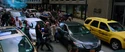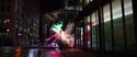 Ecto-1, siren blaring, drove under an overpass around 66 to 68 Broadway. They passed a bank and garage on 1745 Broadway, looking down towards West 55th Street. Then they drove past 572 8th Avenue, at the intersection with West 38th Street. Ecto-1 turned onto West 38th. Holtzmann declared they hit an impasse. Abby elected to clear a path. Holtzmann remarked it looked like her kitchen. Sabrett Hot Dog Carts blocked their path. There was a green glow coming from the one on the left. They slowly approached. The lid popped open. Slimer roared and scarfed more hot dogs. They gasped. Abby asked what the hell that thing was. Slimer turned and burped at them. They gasped. It flew towards them. They side stepped him. Slimer flew right into the driver's seat of Ecto-1. Abby and Patty yelled at him to stop. The engine started and Slimer reversed out. Abby was annoyed at Holtzmann for leaving the keys in the car. Slimer swung Ecto-1 into a parked car. Patty knew her uncle was going to be pissed. Slimer roared and the gas pedal was pushed down. He charged Ecto-1 towards them. Abby ordered everyone to light him up. Holtzmann interjected and revealed the equipment on the roof rack was basically a nuclear reactor. Patty cast her vote that they don't shoot at it. They gasped and jumped out of the way. Ecto-1 barreled past the carts. He rammed a fire hydrant. A geyser erupted. He rammed a light pole and drove on. The pole crashed down, narrowly avoiding a man running. Abby realized they gave a ghost a nuke and proposed they should probably run. Elsewhere, armed forces poured out of a military vehicle. Officer Jensen ordered everyone to move out. Police and soldiers took positions outside the Mercado Hotel and cocked their guns.
