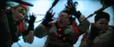 - ↑ EMPIRE Online "Empire Podcast: Ghostbusters Spoiler Special with Paul Feig" 28:49-29:27 7/27/16 Paul Feig says: "We had in that fight, we had a ton of extras that were dressed in amazing period clothes and everything but what happened was when we're putting it together, we realized we had the situation where as an audience, it was that thing when you're watching a Kung Fu movie and guys are surrounded by a bunch of guys but only three go in at a time. Why don't they all run in and wipe them out? So we're going, 'Actually, it does look weird they're standing there...' so we created more of that smoke where they just energize out of the fog which I think is just a cool idea so we brainstormed that as we put together the VFX."