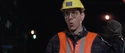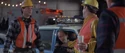 Many hours later, now well into the evening, at the same spot on First Avenue, Egon Spengler was dressed like a road worker and used a jackhammer. A police squad car braked near him. The First Cop yelled "Hey!" from his seat to get Egon's attention then asked him how he was doing. Egon asked the officer if he was talking to him. He was. Egon improvised and told him it was cutting fine. The officer asked him why he was cutting. Peter and Ray exited Libby's Coffee Shop and exchanged looks. Egon repeated his question. The officer was waiting for an answer. Egon called out to the "boss" and gestured at them to come over. They walked back over to Egon. Peter spoke in a thick stereotypical accent of a blue collar man. Peter asked Egon who told him to stop cutting. The officer repeated himself again. Peter turned to the First Cop and played along, asking him if he told Egon to stop cutting. The officer confirmed that and repeated himself. Peter stalled with rhetoricals and pointed out they let the police work. Ray emulated Peter's blue collar impression. Ray explained they were working overtime because "some diaper bag downtown" was being a jerk and making them work on a Friday night. Peter agreed. He asked Egon. Egon shouted, "Yo!" They all giggled. The officer capitulated and told them to take it easy. The squad car drove away. Ray asked Egon what he had been doing. Egon was incensed and pointed out that while they were getting coffee for an hour, he dug a big hole in the middle of the street. Ray looked down the hole in amazement and gathered Egon uncovered an old air shaft that went on and on. Egon took readings with the Giga Meter while Ray aimed his flashlight down the hole. Egon remarked it was very intense and suggested they get a deeper reading. Ray agreed. They stood back up. Egon noted someone had to go down there. Ray agreed. Ray looked up and realized Peter and Egon were staring at him.