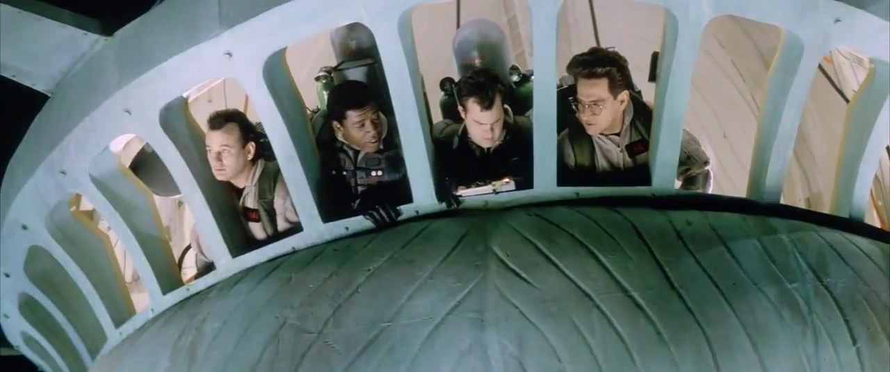 Winston Zeddemore admitted he lived in New York City his whole life and had never visited the Statue of Liberty but now they were taking it for a walk. Ray Stantz wailed. Egon Spengler looked at the Giga Meter and reported they had full power. Ray activated the forward motion control on the modified NES Advantage Controller. Peter Venkman whooped. People saw them and cheered. Winston asked how deep the river was because he didn't want to go for a swim. Egon warned everyone to forget about swimming to safety because they could only survive for 12 minutes in 40 degree water. Peter quipped to Ray to put the Statue on her tiptoes. Ray charted their route: stay right of the channel, come ashore at Battery Park, go up the west side highway to 57, fly up 9 across the park at 65. Peter voiced his disagreement and shuffled next to Ray. He stated they should go up the FDR to 4-2, slide over and jump up Five. Ray countered they would be going the wrong way on Five. Peter pointed out they were walking a 150 foot tall national monument and needn't worry about a traffic ticket.