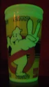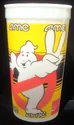 - (Australia) Ghostbusters II Cup (Theatre chain unknown) - White Plastic cup, yellow that fades to white with black buildings background that features Ghostbusters II title, Statue of Liberty, Vigo, Slimer. Glows in the Dark.