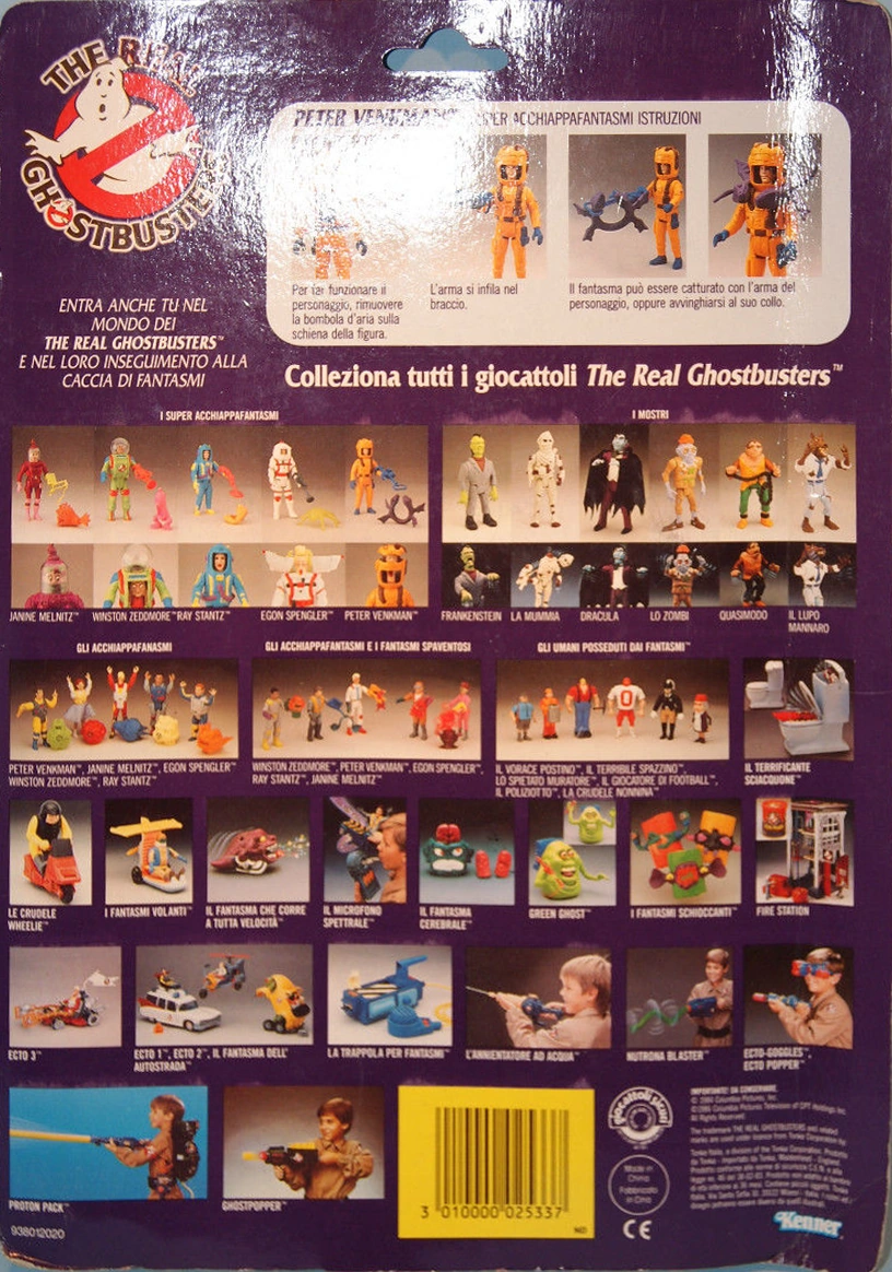 The Italian Toy Line ran from 1987-1990 like the other lines based on the UK line. Among the notable traits is the Lion seal and yellow bar code on the back of the card, which is used on all UK line based toys.