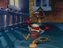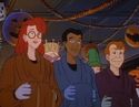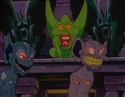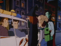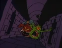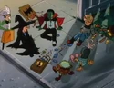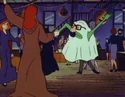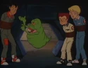 The Junior Ghostbusters were trick or treating on Halloween night with Slimer. They stopped at a door and knocked. A woman answered with a bowl of candy ready. While she asked about their costumes, Slimer stuffed the bowl in his mouth. He then spit out an empty but slimed bowl. A tied up terrier barked at the Junior Ghostbusters and Slimer. The dog's bowl moved and a hand shoved it into the dog's face. It was one of Samhain's goblins. The terrier retreated into its doghouse but the second goblin rose up from beneath it. It then tossed the doghouse and dog away. The Junior Ghostbusters bumped into Samhain's two goblin minions and dropped their candy. Although the Junior Ghostbusters believed they are just kids in costumes, Slimer pondered about their real identity. Jason gave the goblins some candy as an apology, but they ran off into the night.