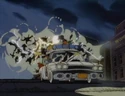 Outside the fortress, the Ghostbusters made a retreat as Samhain sent some ghosts after them. The Ghostbusters however managed to trap some of them using a Proton Cannon and Trap apparatus. Winston then created a smoke screen to brush off the rest. The Ghostbusters dropped the children off at their clubhouse. Back at the fortress, an angry Samhain decided to lead the rest of his minions to search for the Ghostbusters. The Junior Ghostbusters, now dressed in their jumpsuits, waited nervously for the Ghostbusters. A jerry rigged ghost detector started stirring all of a sudden. The Junior's headed outside and saw Samhain's army flying by and they decided to enter Samhain's empty fortress. They brought Ecto-Junior from the garage and headed out. Meanwhile, the Ghostbusters were finalizing their counteroffensive. Egon showed everyone the cosmic shape of the fortress and deduced all they had to do was change the shape and it would collapse.