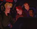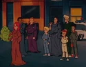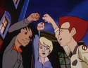 - Top left: When the Junior Ghostbusters raise their club rings to the sky.