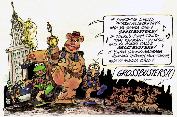 Muppet Magazine in the Spring 1985 issue did a five page parody based on Ghostbusters called "Grossbusters".