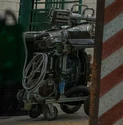 A train horn blew nearby. Patty advised them to hurry up. Holtzmann remembered she forgot the most important part and placed a collar around Erin's neck for a little bit of grounding so she didn't die immediately. Holtzmann asked Erin if she knew her iron level. She did not. Holtzmann told her it was fine. Abby chuckled. Patty asked them if they caught a ghost before. Holtzmann gave her the green light to aim and fire. The proton stream fired but stopped way short of the ghost and drooped into the ground. Abby suggested more power. Holtzmann tried again. Erin fired off a sustained stream and wrangled the ghost but it was still coming at them. Erin asked if the stream could get any stronger. The ghost growled and thrashed at them as the stream entangled it but it continued to close in on Erin. The ghost pawed at her. Erin gasped and fell on her back. Patty alerted them the train was coming and it was time to leave. Abby asked Erin to lure it back on the platform. The Proton Box fell on its side. They pulled Erin to the platform. The train closed in. Patty realized that was the express train, which meant it wasn't stopping at the station. Holtzmann remembered and quickly removed the collar. The train ran over the Proton Box and the ghost was freed. Holtzmann quickly figured out how to make the proton stream strong enough to subdue ghosts and how to make the technology more mobile. The Proton Box was succeeded by the Proton Pack.