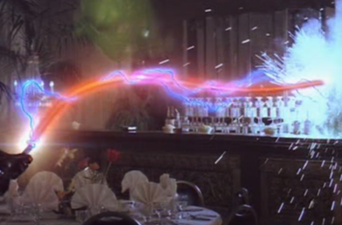 - ↑ Richard Edlund (2009). Ghostbusters- Slimer Mode (2009) (Blu-Ray ts. 36:33-36:59). Columbia TriStar Home Video. Richard Edlund says: "And so we came up with an animated style for the neutrona wands, where the beam would shoot out and it would hover. And it was funky-looking, but very kind of funny. And there was something about it. We talked about rubberizing light. It wouldn't have been funny if it had just been a straight beam. It's like a laser beam. Everybody's seen that already."