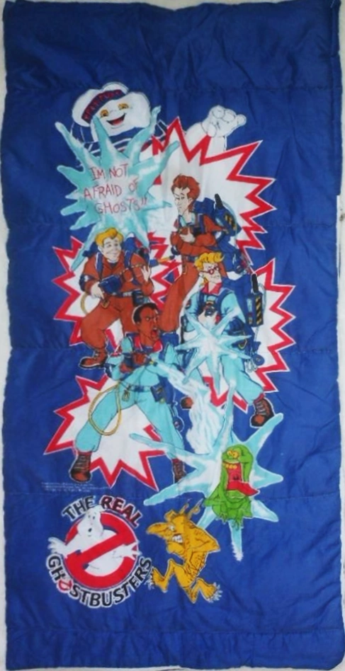 The Real Ghostbusters: Slumber Bag was released in the USA by The Bibb Company. It features the four Ghostbusters, Stay Puft Marshmallow man, Slimer, and Pointy Ears Ghost. The Slumber Bag appears in Sears Wishbook Christmas Catalog, 1988.