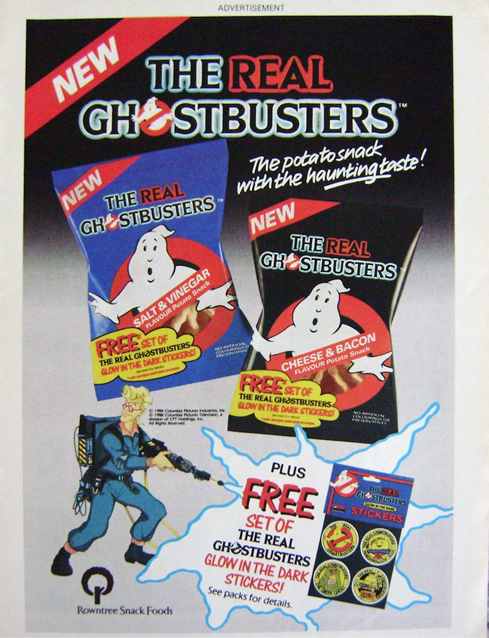 - "Halloween Love blog posting: When Ghostbusters Ruled The World : Take A Look At These Classic British Magazine Adverts"-This is where the Real Ghostbusters Potato Snacks Ad was found.
