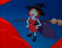 On the night of a full moon, the witch pulled a prank on two helicopter pilots. A gust of wind knocked Twinkie off the broom. The cat fell on top of a pizza delivered to Slimer. The witch scoured all of New York City for her lost cat. After casting a location spell, she gleaned an imperfect image of the Firehouse. She arrived at the Firehouse when she noticed it was snowing only in that area. The witch teamed up with Louis Tully, Ray Stantz, and Egon Spengler to find Twinkie and get past Slimer's wishes. She took Twinkie back, admitted she wasn't all that bad, and flew away.